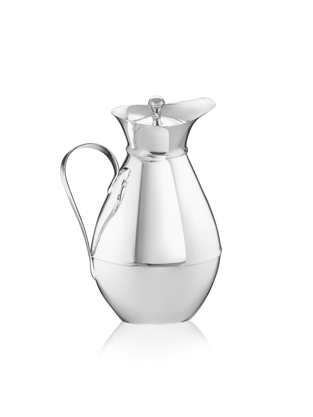 Идеально гладкий кувшин выполнен из серебра 925°. Он имеет простой лаконичный дизайн, без рисунка и вставок. Это изделие достойно пополнит фамильную коллекцию.