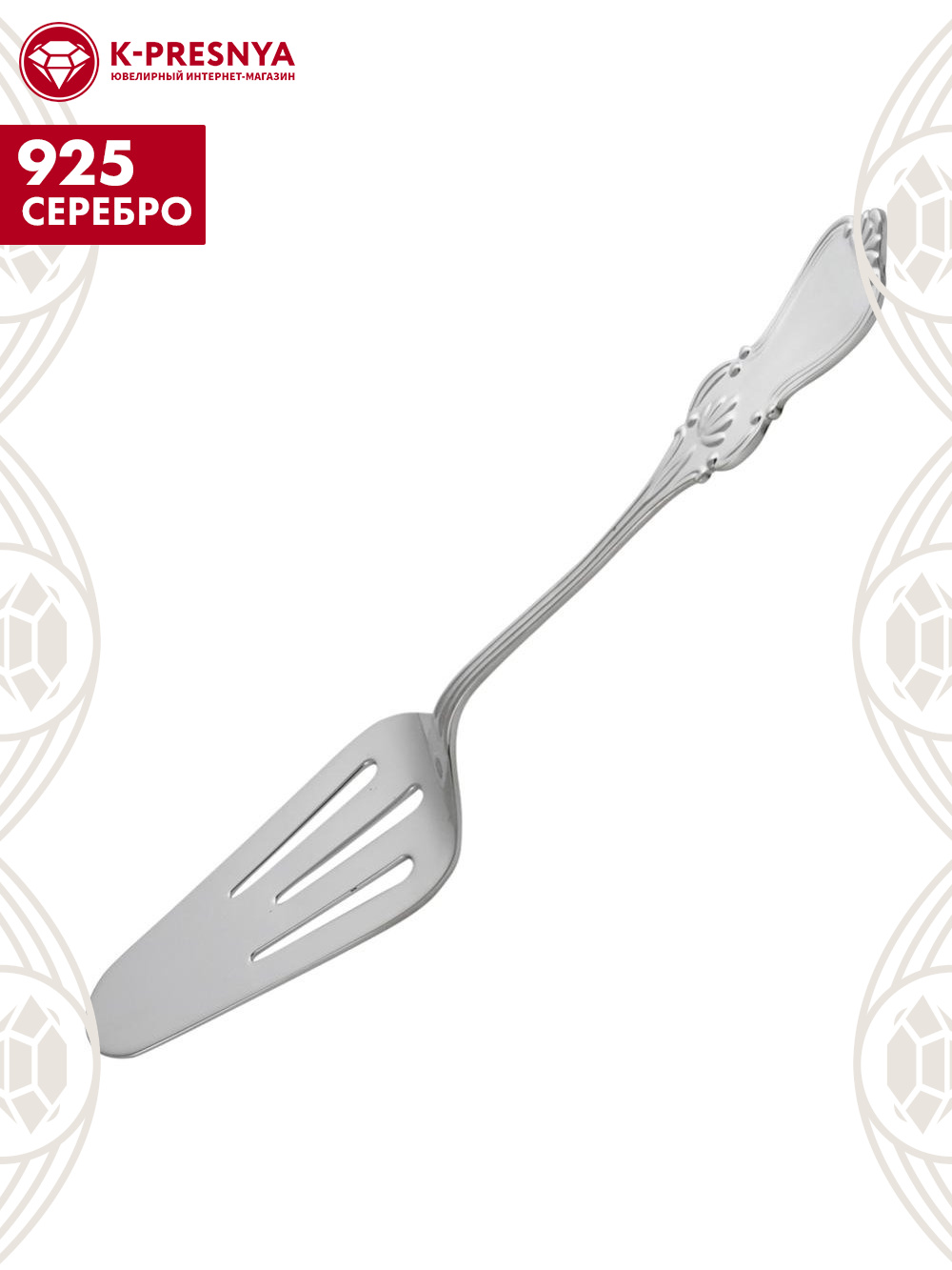 Лопатка десертная "вензель" серебро 925 пробы, без покрытия, без вставок