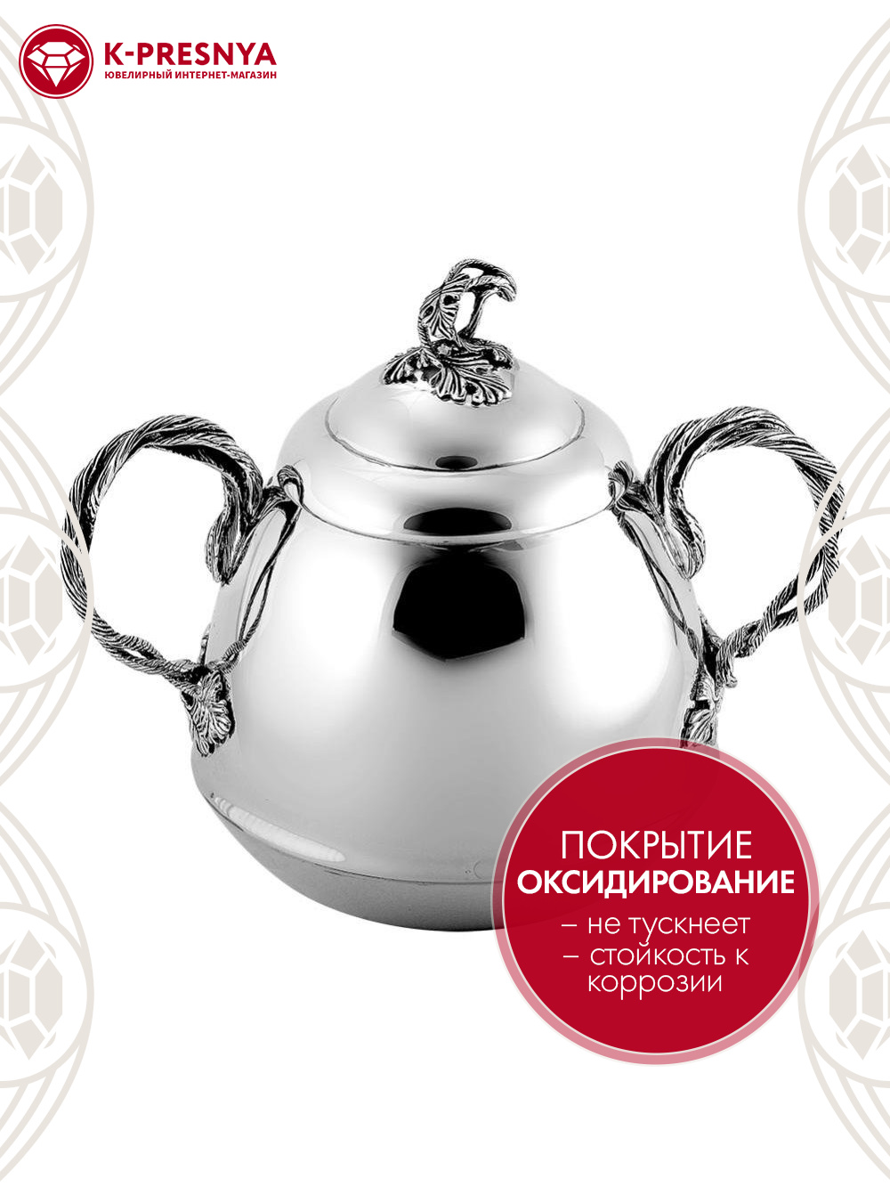 Сахарница серебро 925 пробы, покрытие - оксидирование, без вставок
