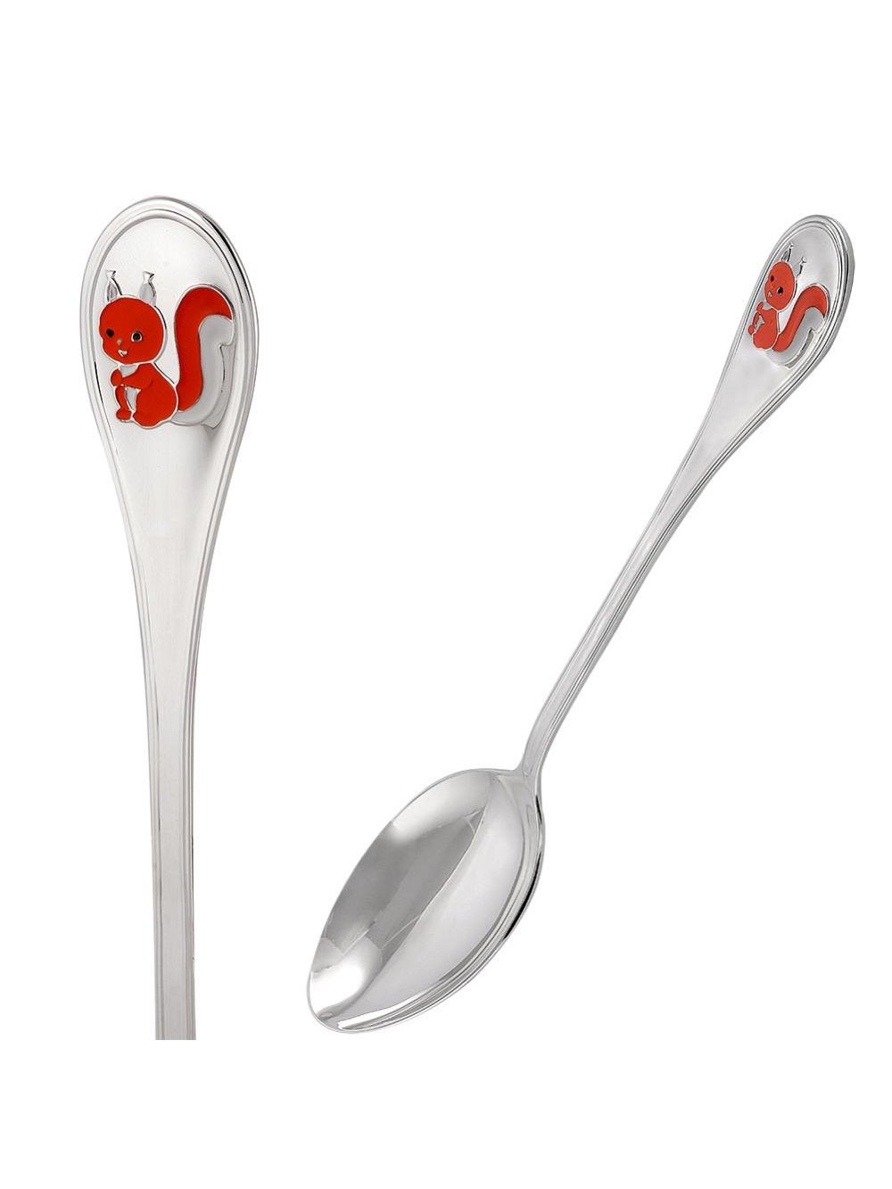 Ложка чайная "белочка" серебро 925 пробы, без покрытия, отделка - эмаль, без вставок