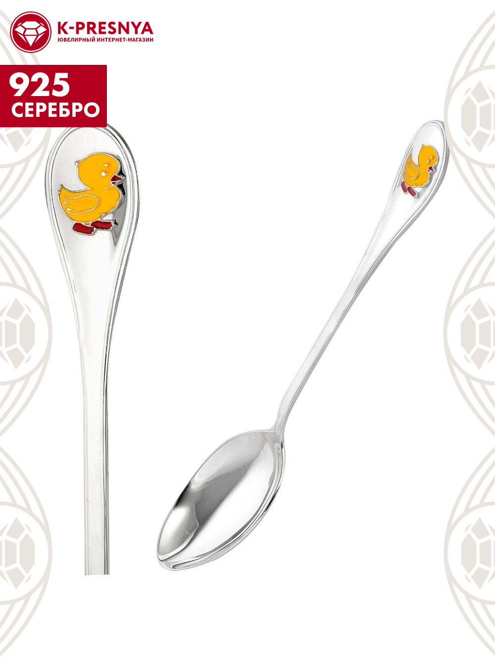 Ложка чайная "цыпленок" серебро 925 пробы, без покрытия, отделка - эмаль, без вставок