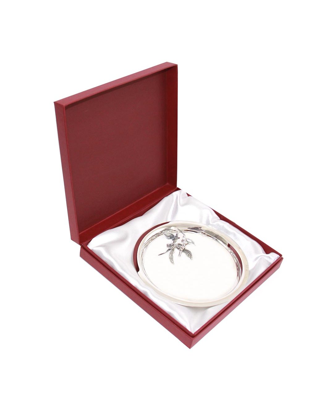 Серебряный, зеркально отполированный поднос с двумя оксидированными голубями выполнен специально для молодоженов. Он станет не только неотъемлемой частью торжества, но и отличным подарком для жениха и невесты.