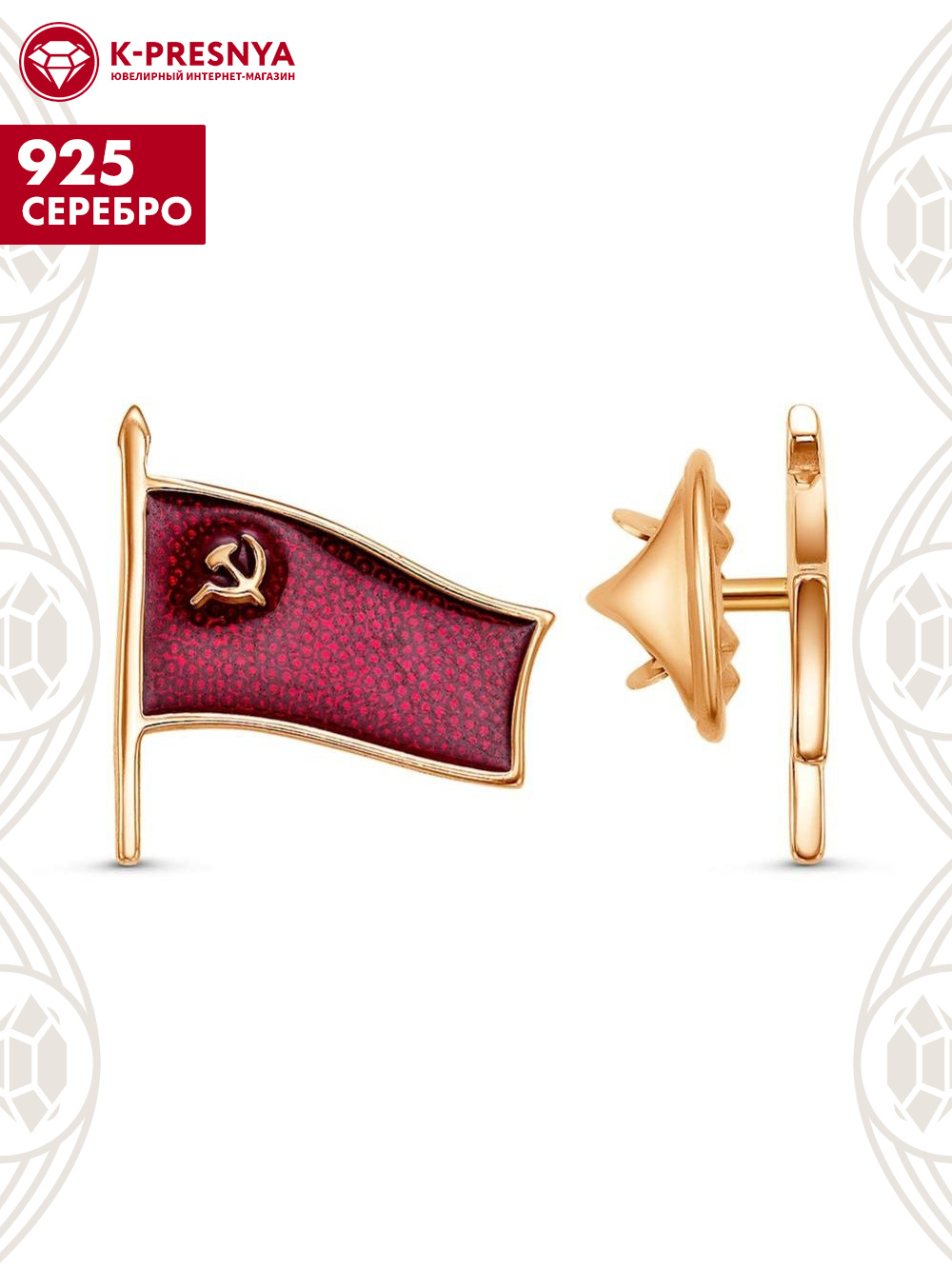 Значок серебро 925 пробы, покрытие - золочение, отделка - эмаль, без вставок