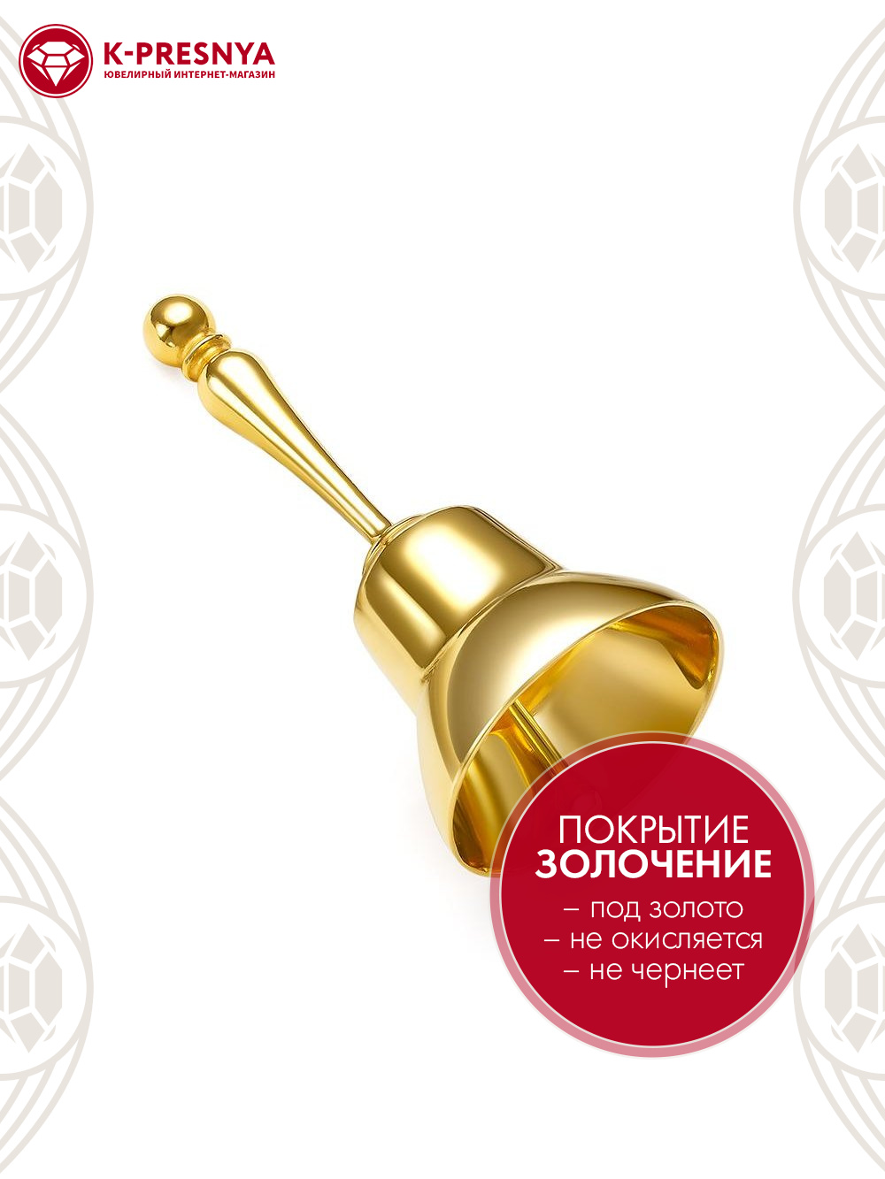 Сувенир "колокольчик" бижутерия, покрытие - золочение, без вставок