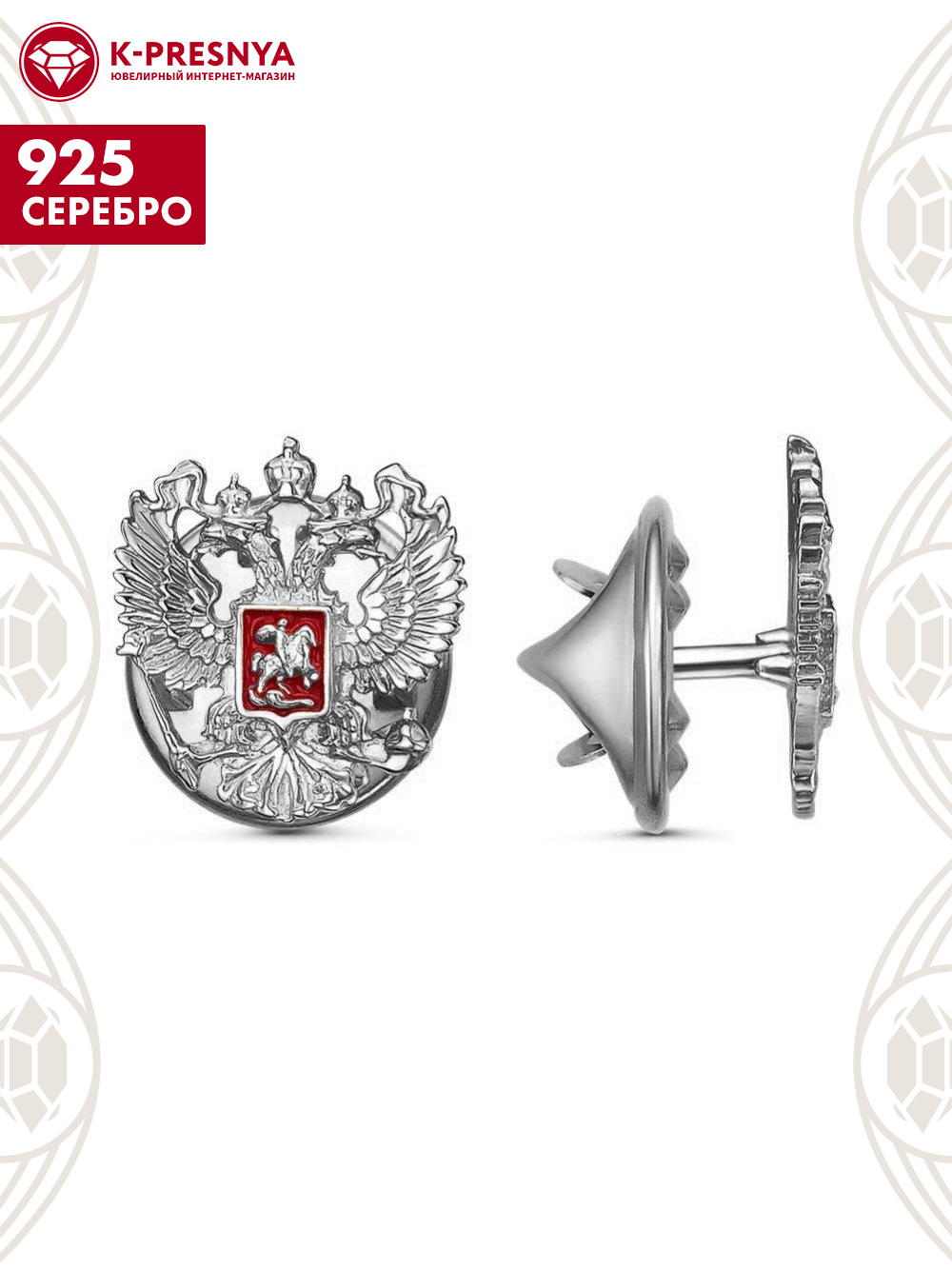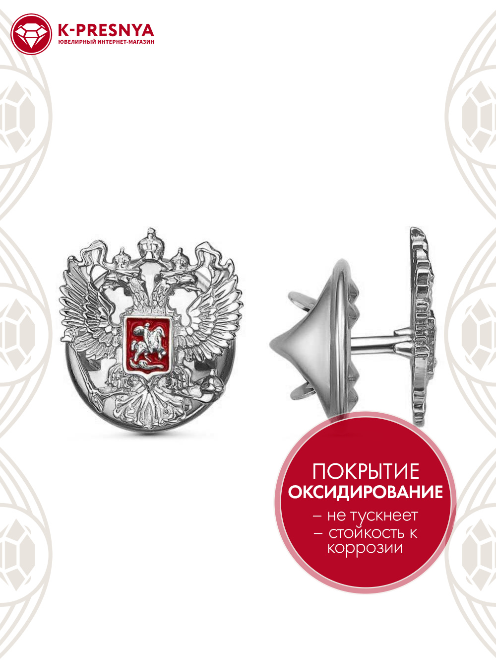 Значок серебро 925 пробы, покрытие - оксидирование, отделка - эмаль, без вставок