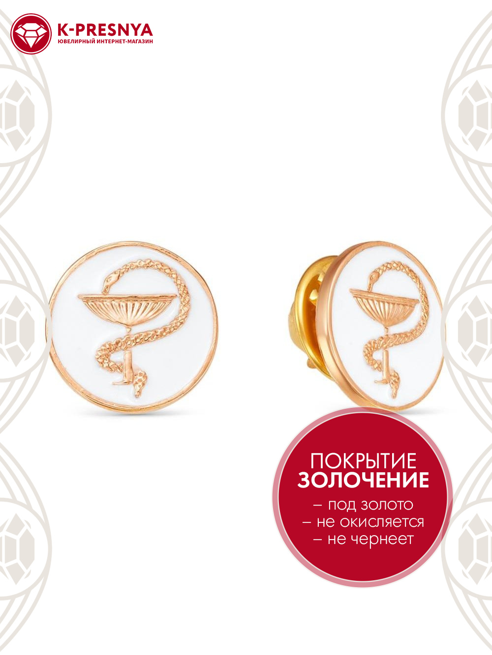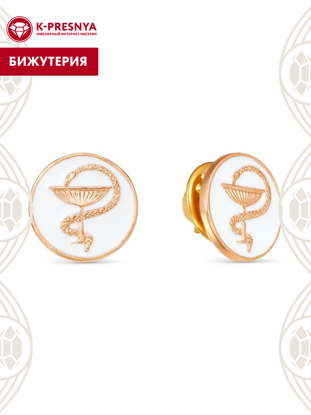 Значок бижутерия, покрытие - золочение, отделка - эмаль, без вставок
