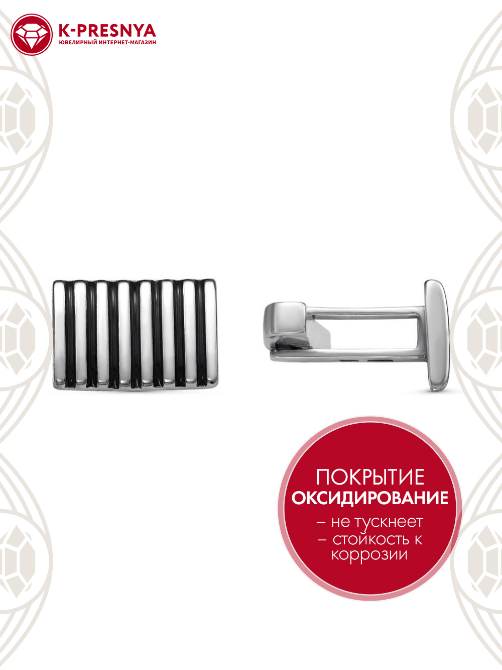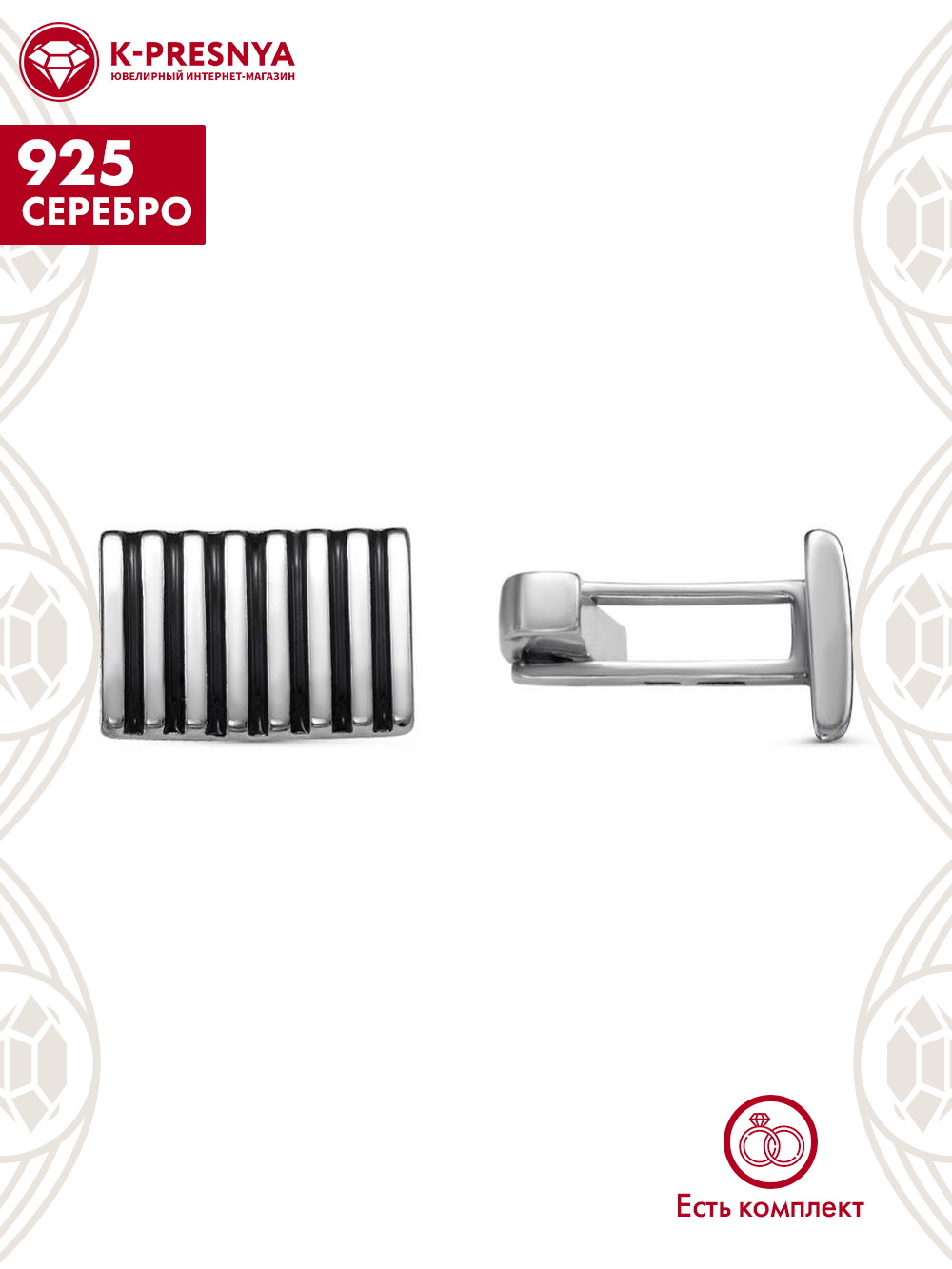 Запонки серебро 925 пробы, покрытие - оксидирование, отделка - эмаль, без вставок